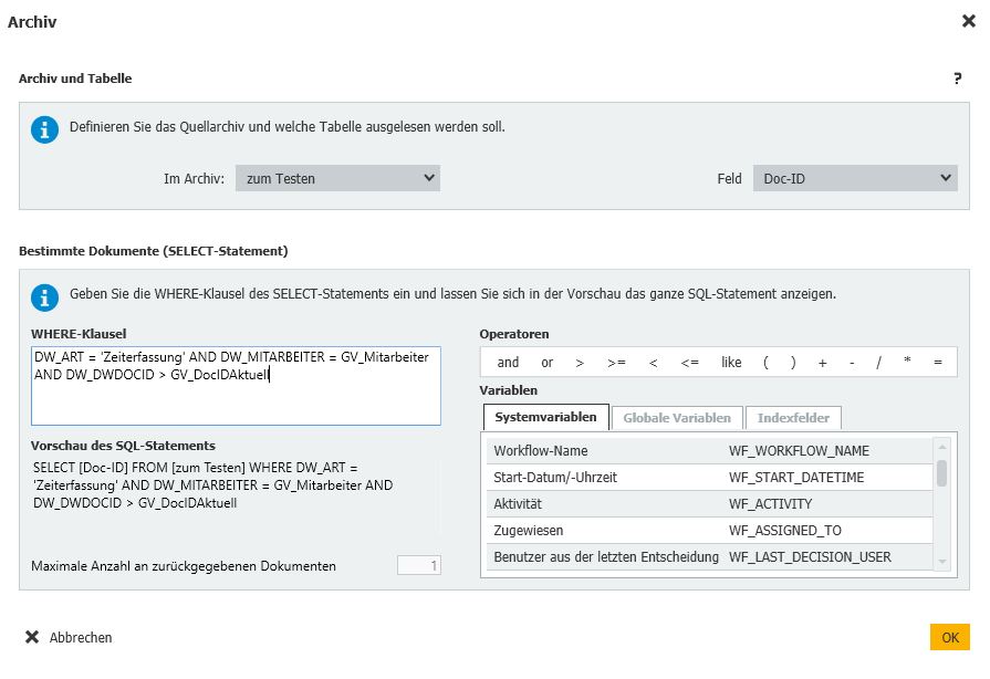 Geht man beispielsweise davon aus, dass die aktuelle DocID die 75 ist, wäre die nächst höhere ID die 78. Diese Zahl wird nach dem Workflow einwandfrei ausgegeben (der Test an über 100 Datensätzen hat einwandfrei funktioniert).