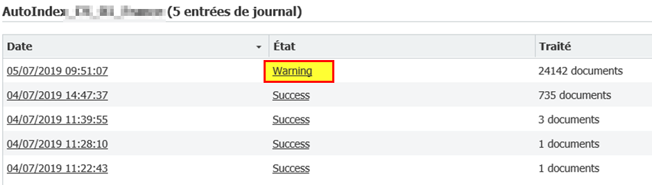 Unfortunally, logs in %PROGRAMDATA%\DocuWare\Logs\AutoIndex only show errors on BPS process level. There is no information about Warnings on Auto Indexed documents.