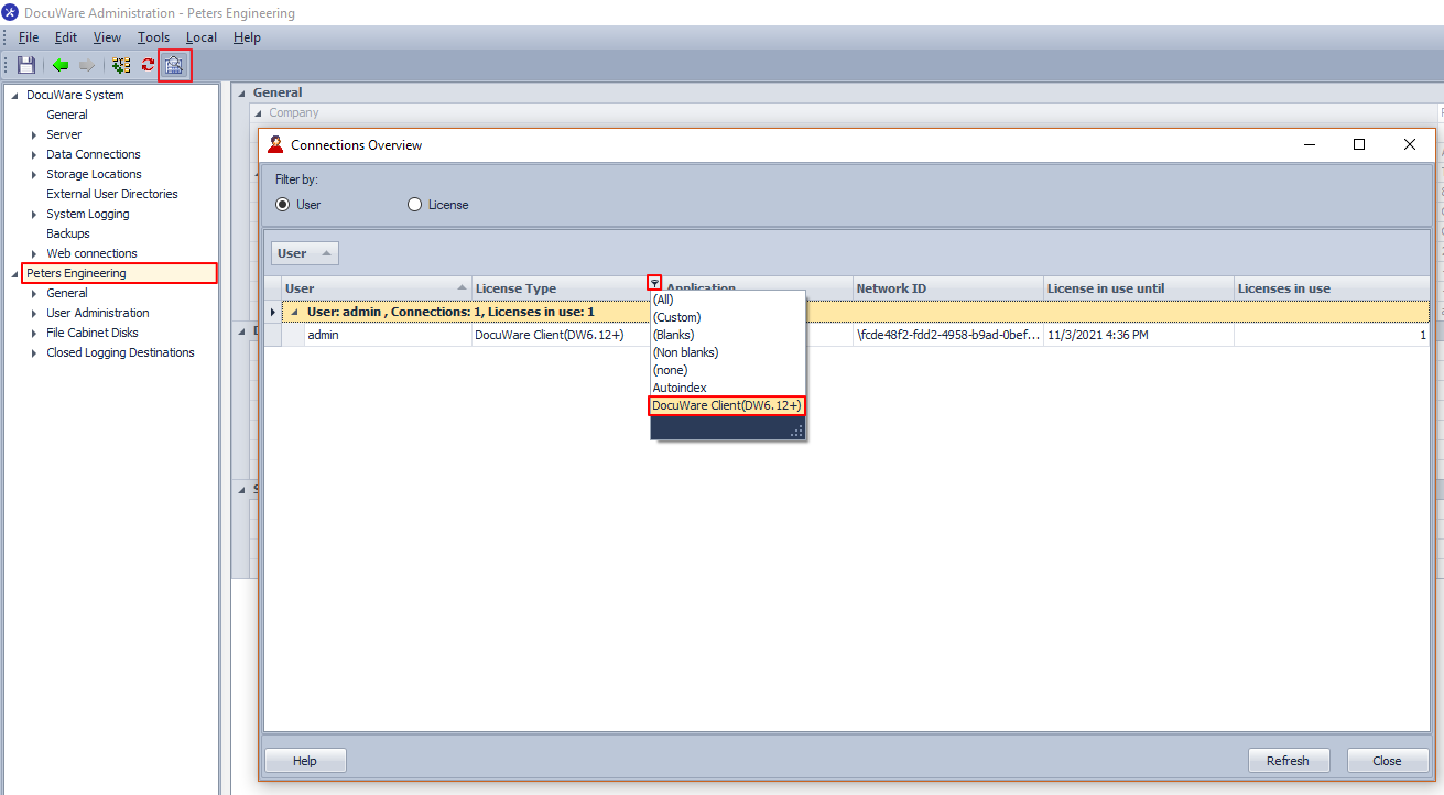 • To find out how many users are currently logged in, filter for "License Type" = "DocuWare Client (...)"