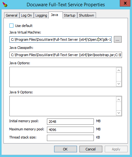 I've googled this error, and it seems to have something to do with java and tomcat. One of them asked to make sure the correct java paths are set in the tomcat service. It asked to open tomcat9w.exe in the full-text installation directory (C:\Program Files\DocuWare\Full-Text Server (x64)\bin). But when I clicked on it. it said: See attachement: dw2.png