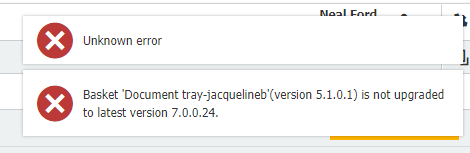 I followed the upgrade path from 6.7 --> 6.12 --> 7 but when I login and go to my web basket (document tray) we get the "Basket '[web basket]'(version 5.1.0.1) is not upgraded to latest version 7.0.0.24".