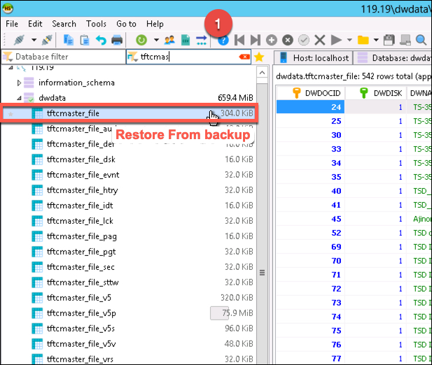 I can recover data from the database, but I don't see the file cabinet on the system.
