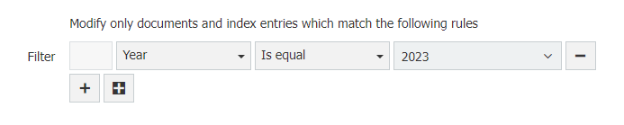 I need to create records in one file cabinet for a set of record from another cabinet, this must be done automatically once a year. The new records include a text field called year, I set a filter in the Trigger tab of Autoindex as in the screenshot, it's works perfectly. Now I want to make the year value dynamic based on the current date at the time of execution, is it possible to do that?
