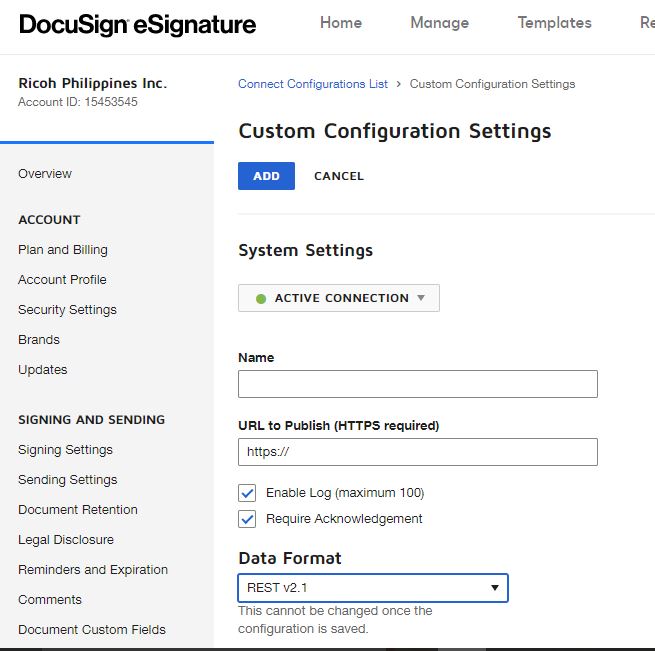 Let me ask another question, Is there also any settings that I need to do in my docusign account?