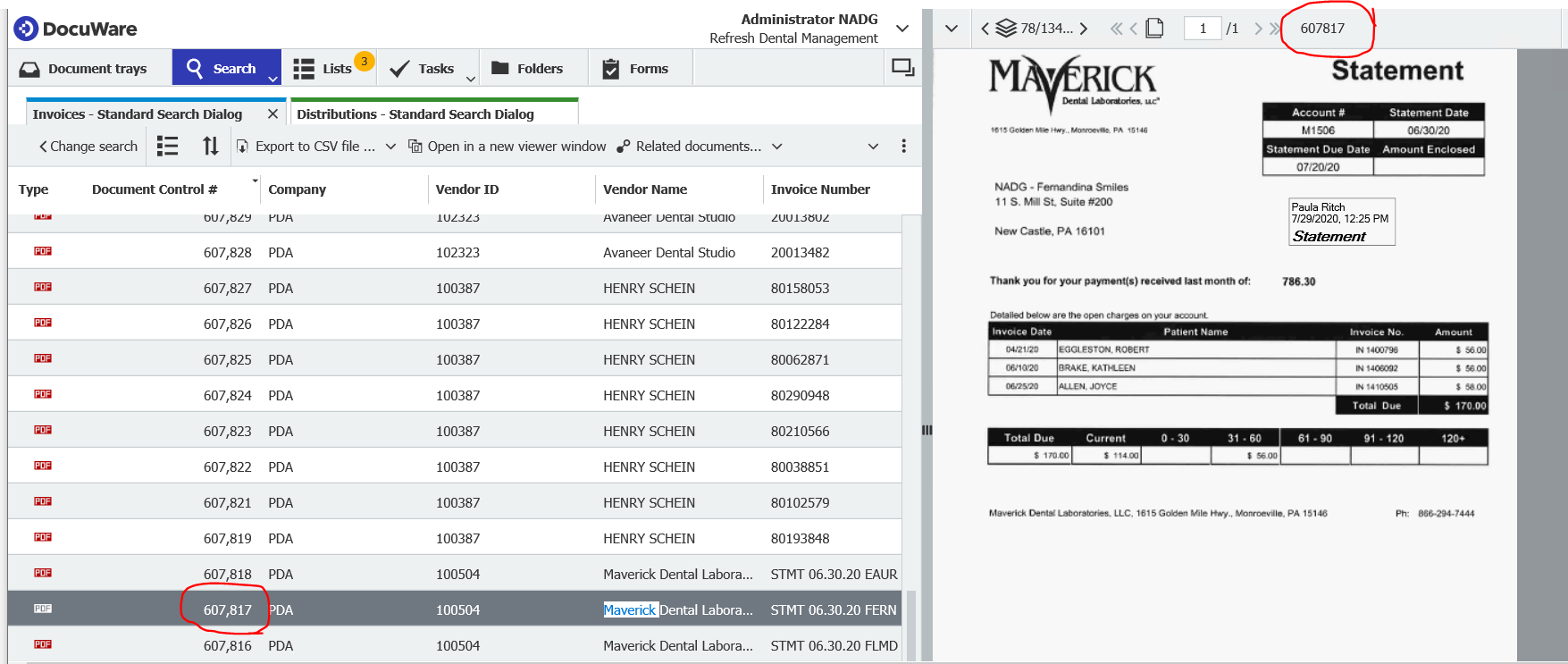 DocuWare on-premise 7.3.0.55868 shows the value of the Document Name field in the File Cabinet Viewer.