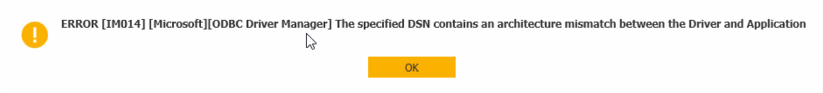 In Workflow Designer, the source is again available, but choosing it gives the error "The specified DSN contains an architecture mismatch between the Driver and Application"
