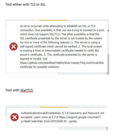 Following error sample is from google. When I use STARTTLS